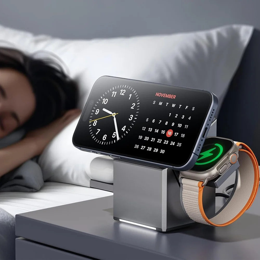 Ne perdez plus de temps ni d'espace avec plusieurs câbles ! Wipod 3-en-1 vous permet de recharger en même temps votre iPhone, votre Apple Watch et vos AirPods . Tout est centralisé sur un seul support élégant et pratique , parfait pour une utilisation quotidienne à la maison ou au bureau.